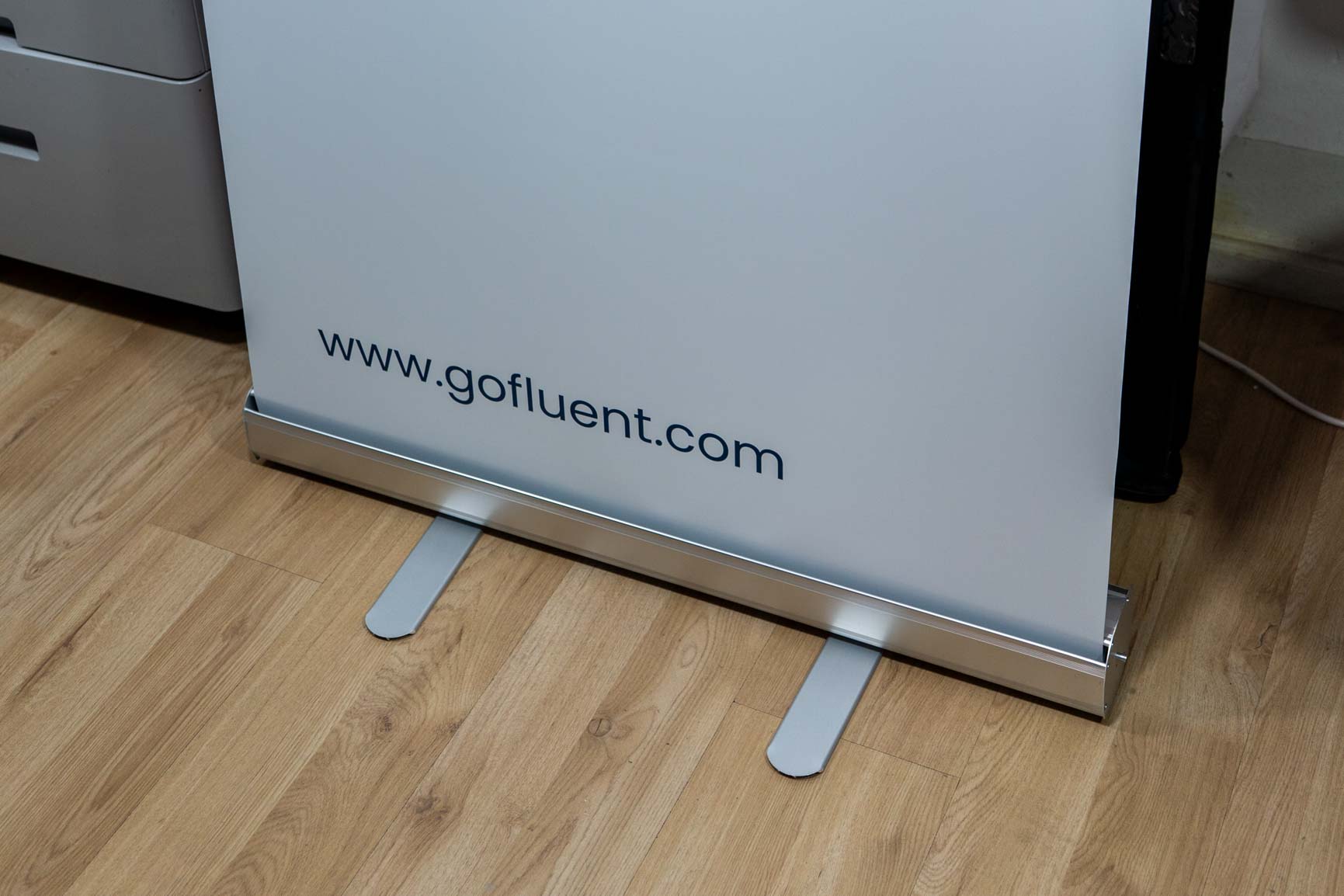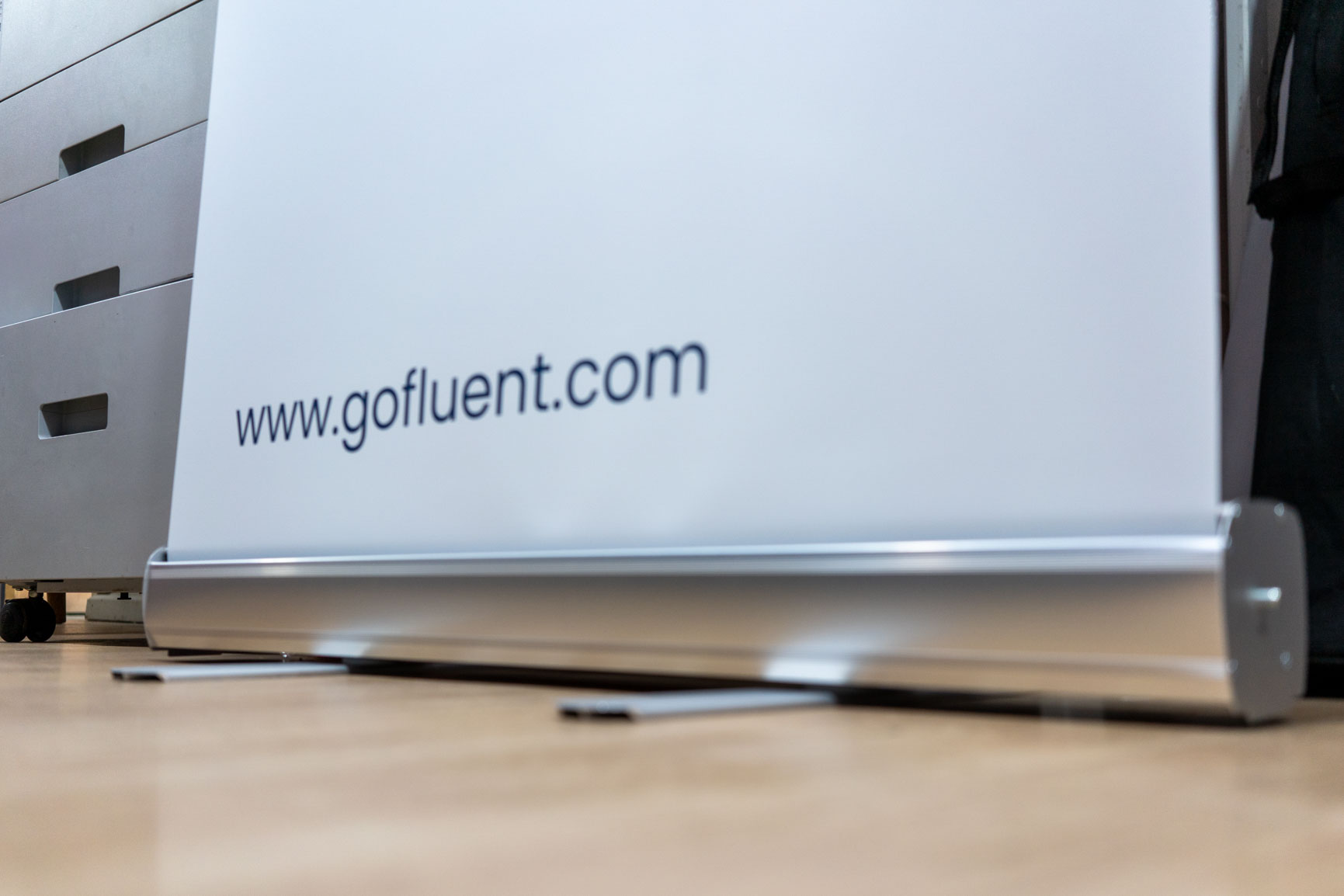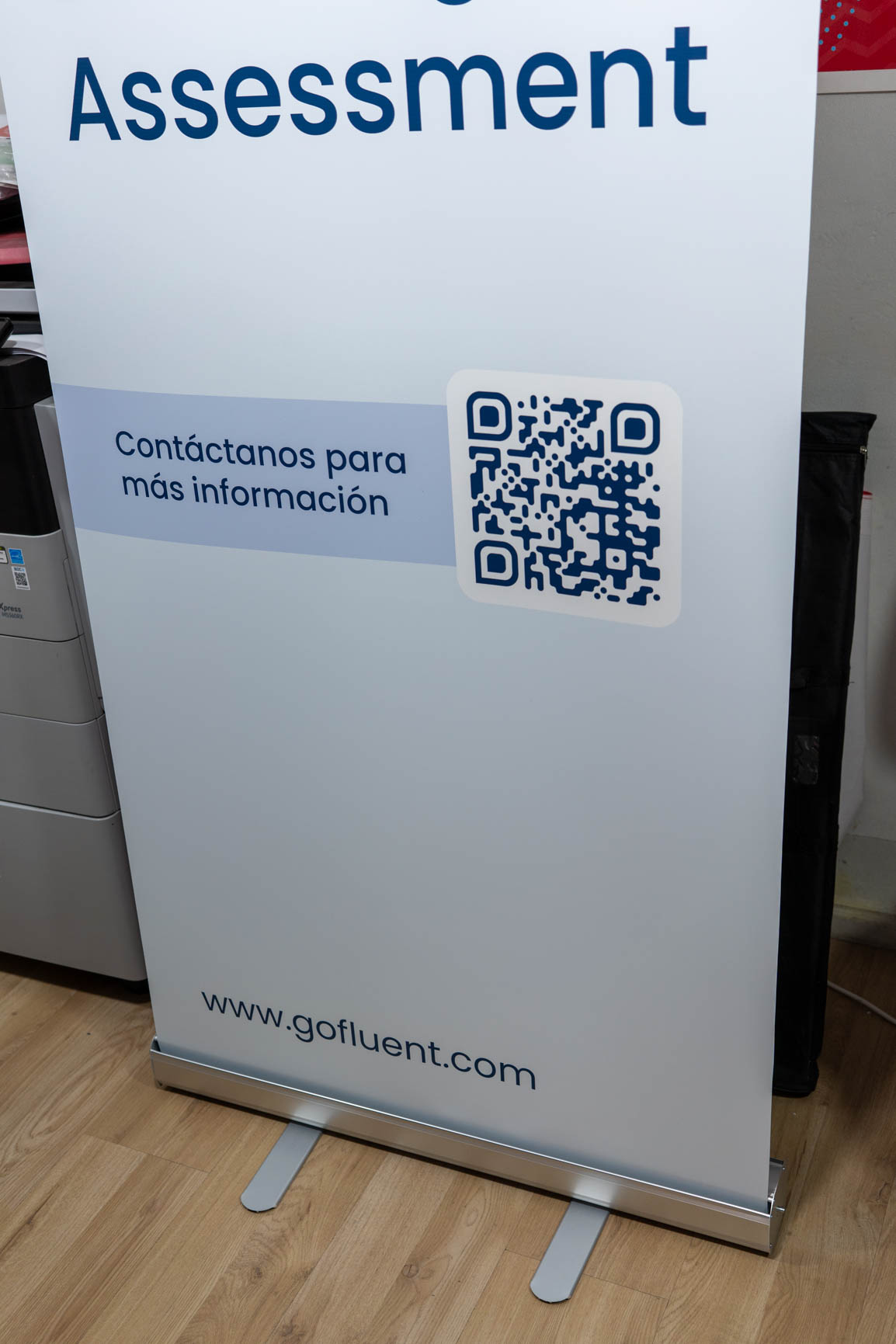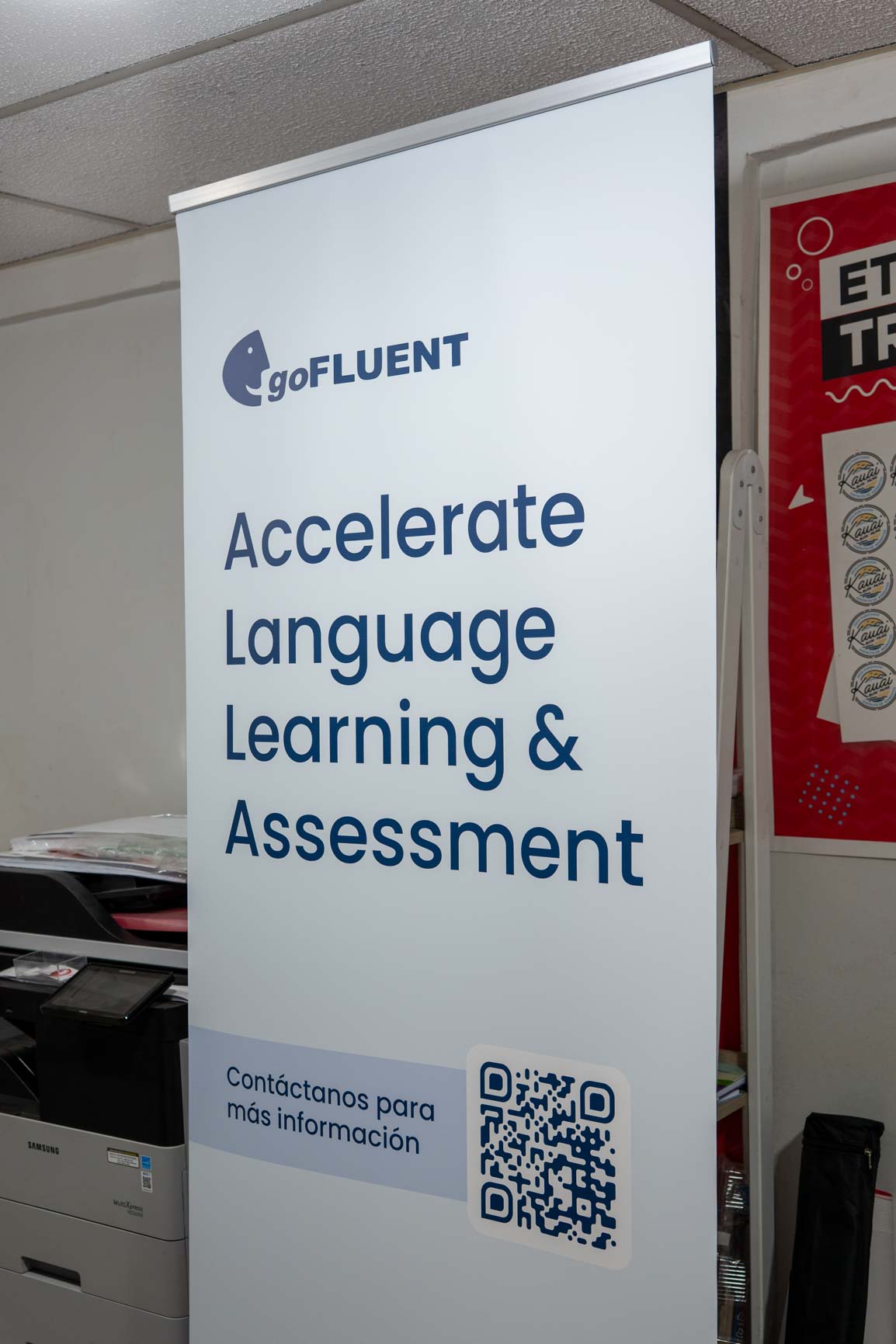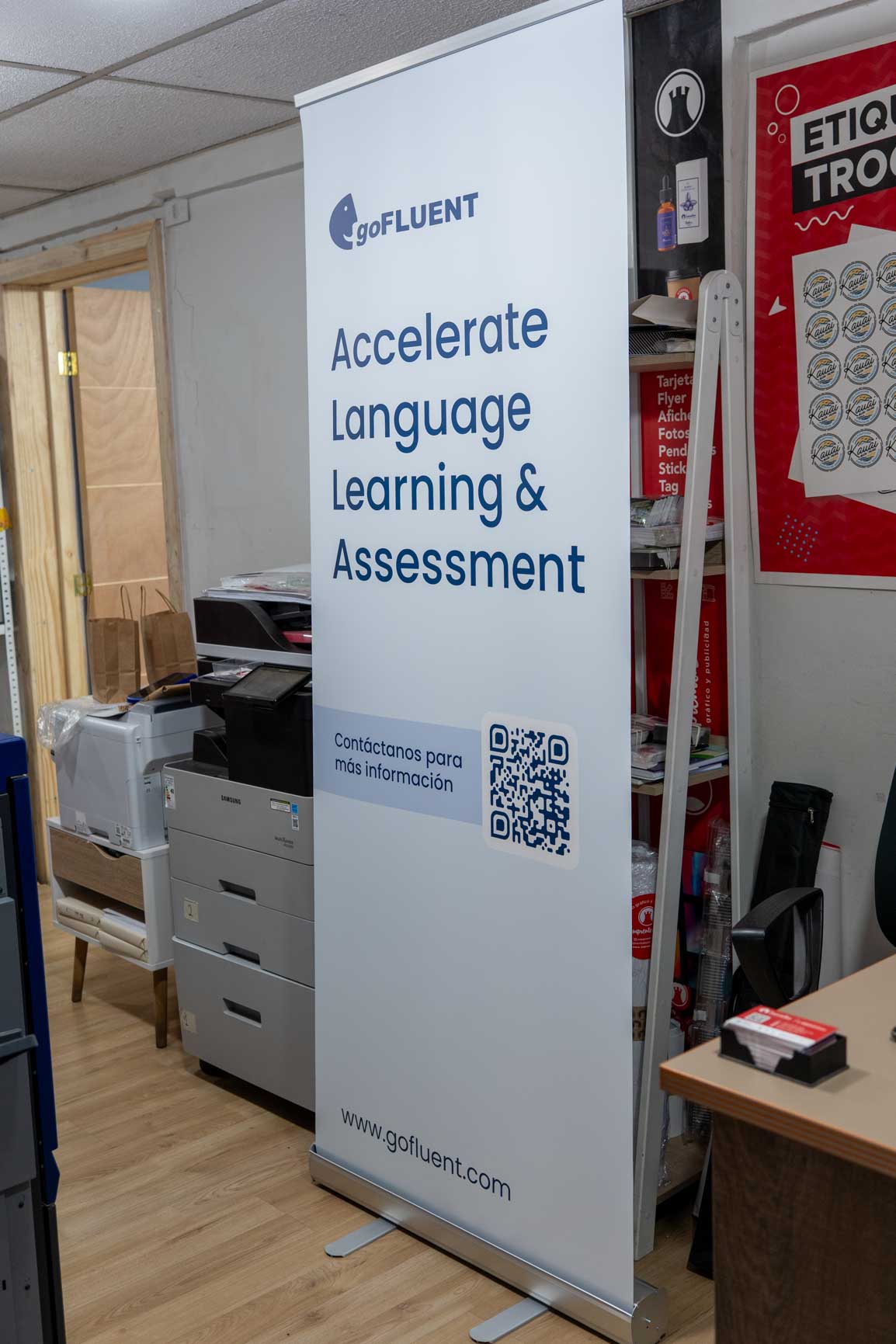Desarrollamos un roller publicitario para GoFluent, enfocado en comunicar de forma clara y profesional dentro de espacios interiores.