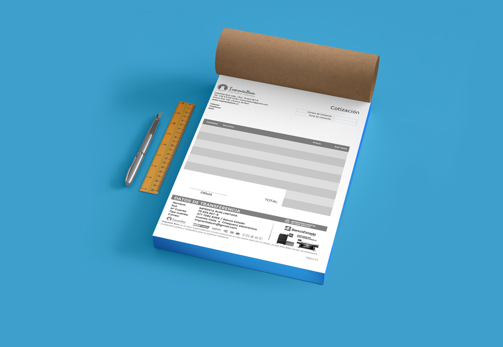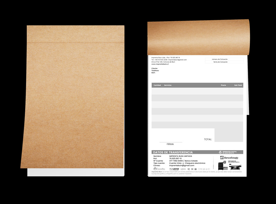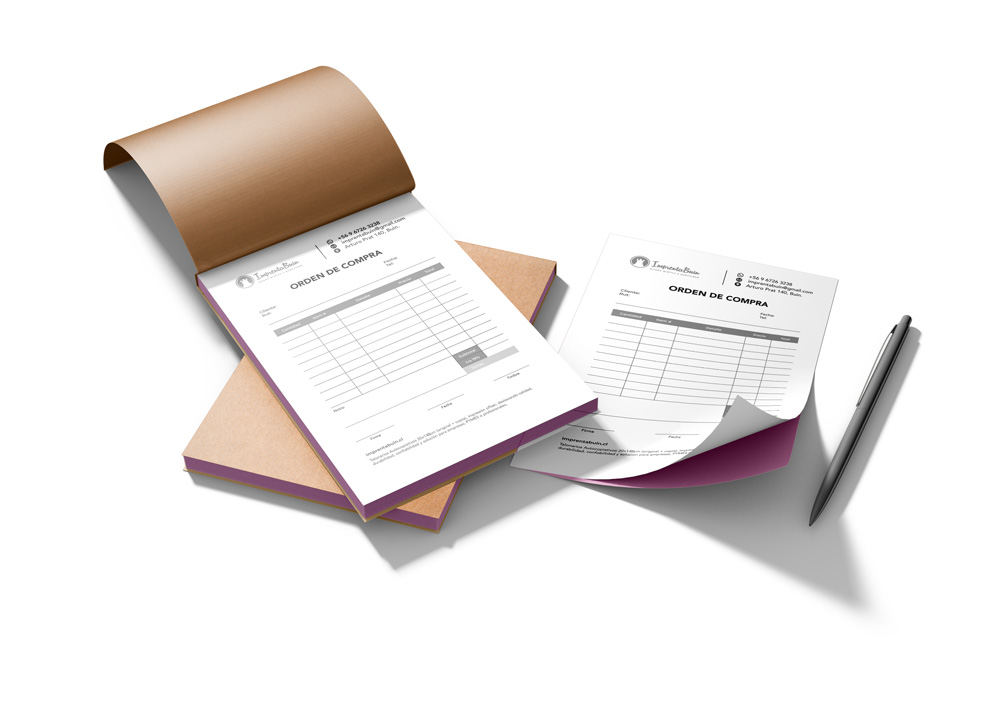 En Imprenta Buin utilizamos impresión offset de alta calidad, que garantiza que cada talonario sea duradero y resistente al uso diario. Esto significa que la información escrita en el original se transfiere de forma precisa a la copia sin riesgo de borrarse o mancharse.